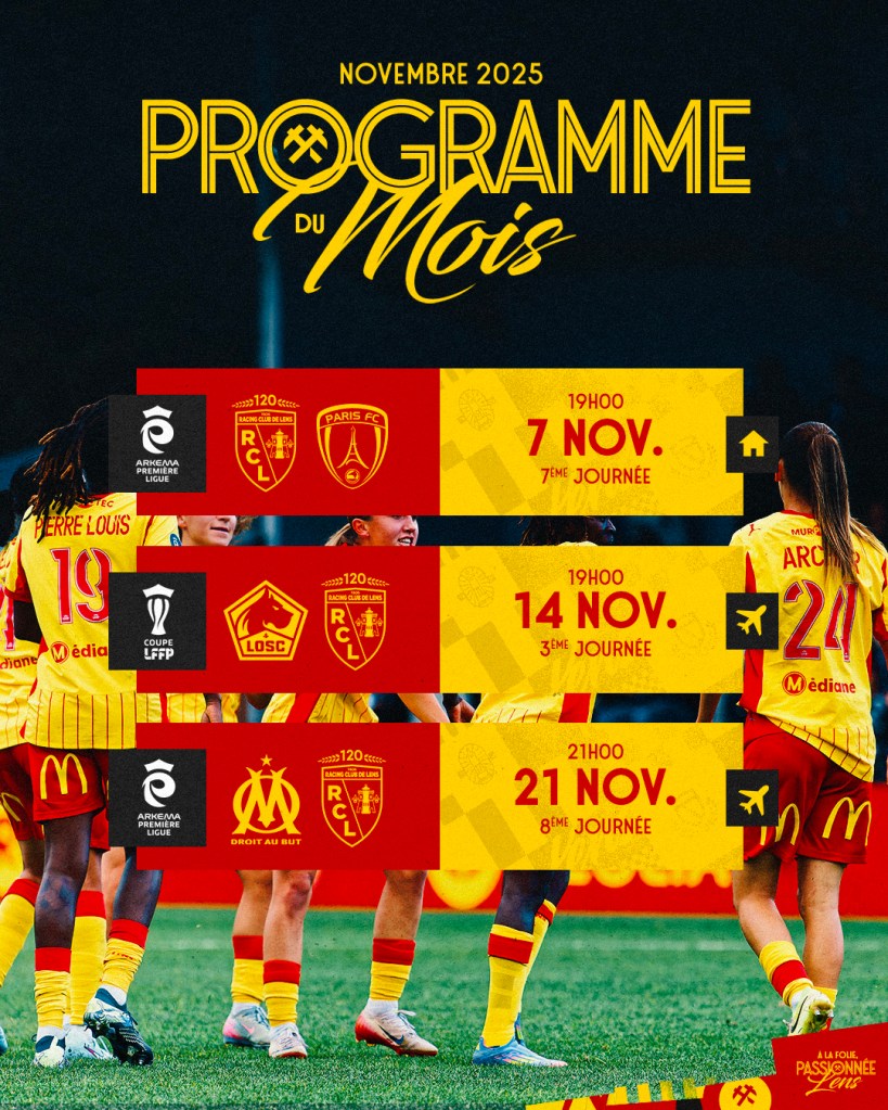 Un nouveau défi face au Paris FC , un derby en Coupe LFFP det un déplacement chez l’ OM Féminin sont au calendrier des Lensoises en novembre.
