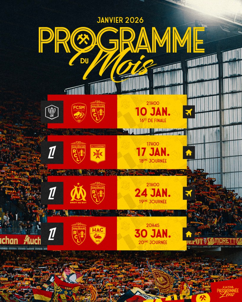 Une affiche face à un historique du championnat de France en Coupe de France Crédit Agricole deux réceptions à Bollaert-Delelis et un déplacement au Vélodrome attendent les Sang et Or en Janvier