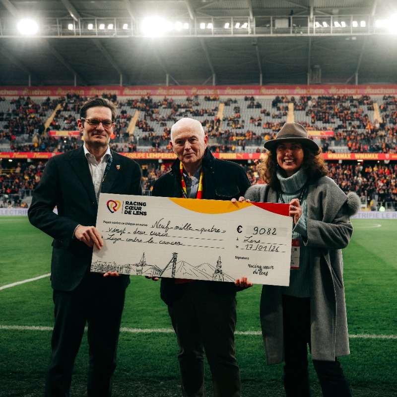 Une action, désormais tradition ! Pour la cinquième saison consécutive, l’équipe féminine du Racing s’est engagée pour « Octobre Rose », campagne annuelle visant à sensibiliser la population au dépistage du cancer du sein et à récolter des fonds, notamment pour la recherche. Ainsi, les joueuses de Sarah M’Barek ont porté pendant plusieurs semaines une tunique rose, symbole de lutte et de solidarité, qui a ensuite été vendue aux enchères au profit de la Ligue contre le Cancer. Avant la réception de l’AJ Auxerre à Bollaert-Delelis, lors de la 18e journée de Ligue 1 McDonald’s, le Président Joseph Oughourlian et la Présidente de la section féminine Andreea Koenig ont remis un chèque à Bernard-Marie Dupont, président du comité du Pas-de-Calais.